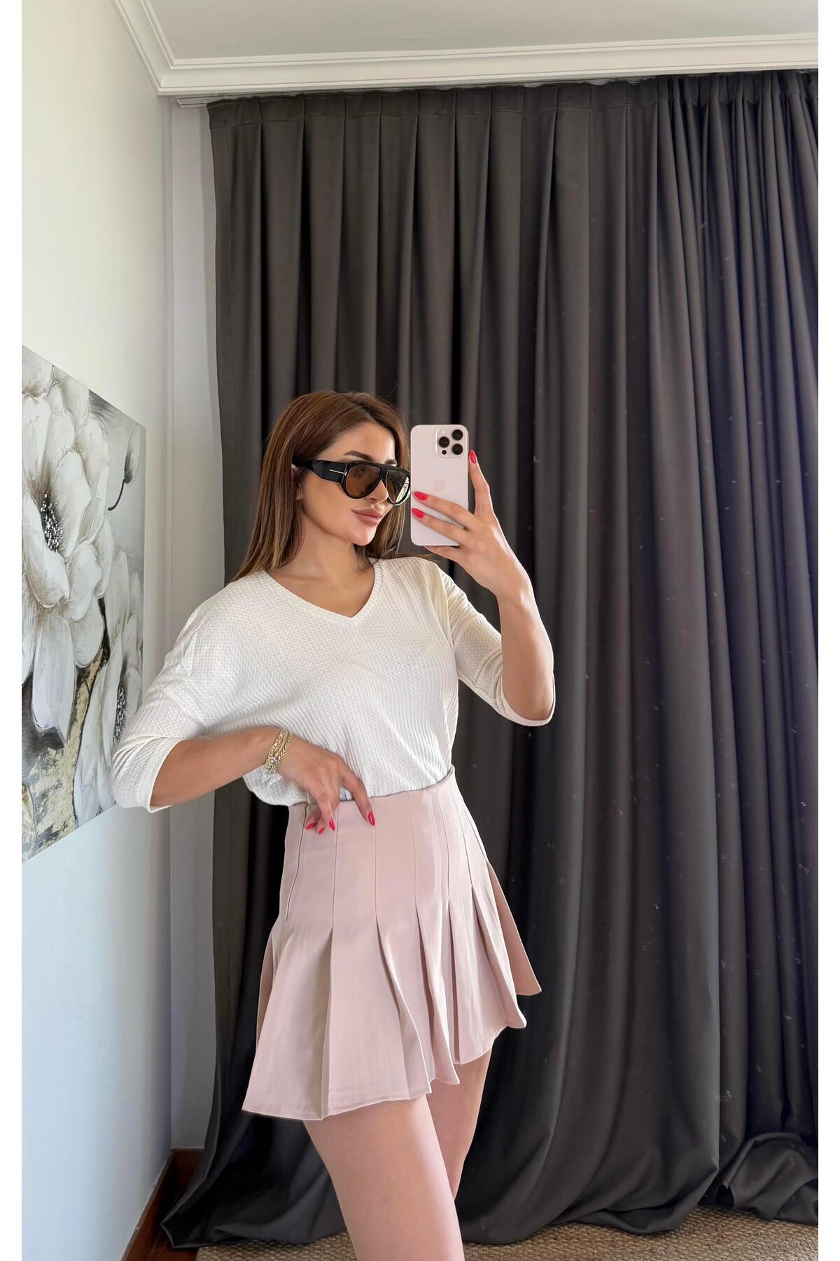 Caracteristici Daves Fusta țesătă plisată Bej