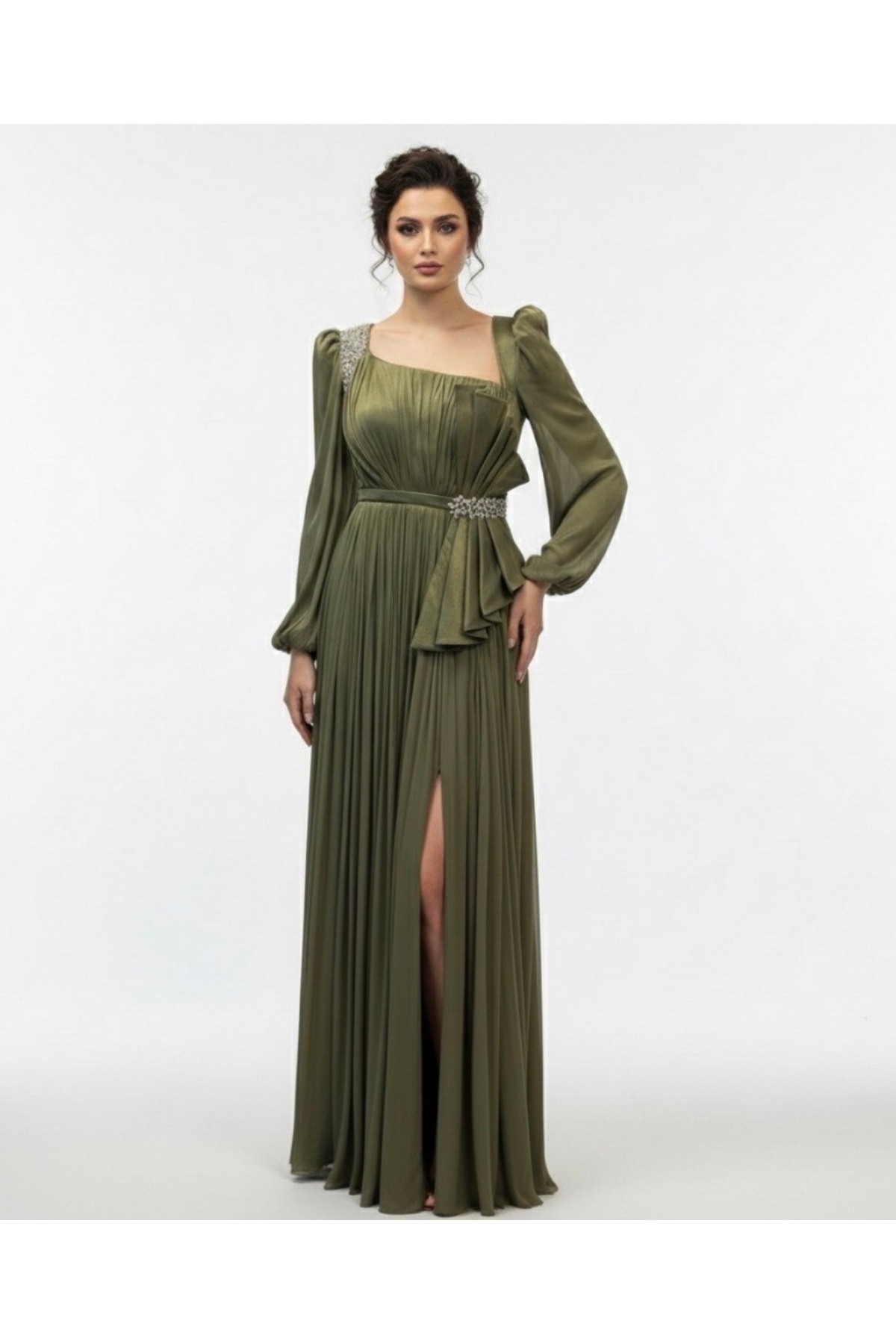 Caracteristici DEV LINE Rochie Elegantă Plisată Olive
