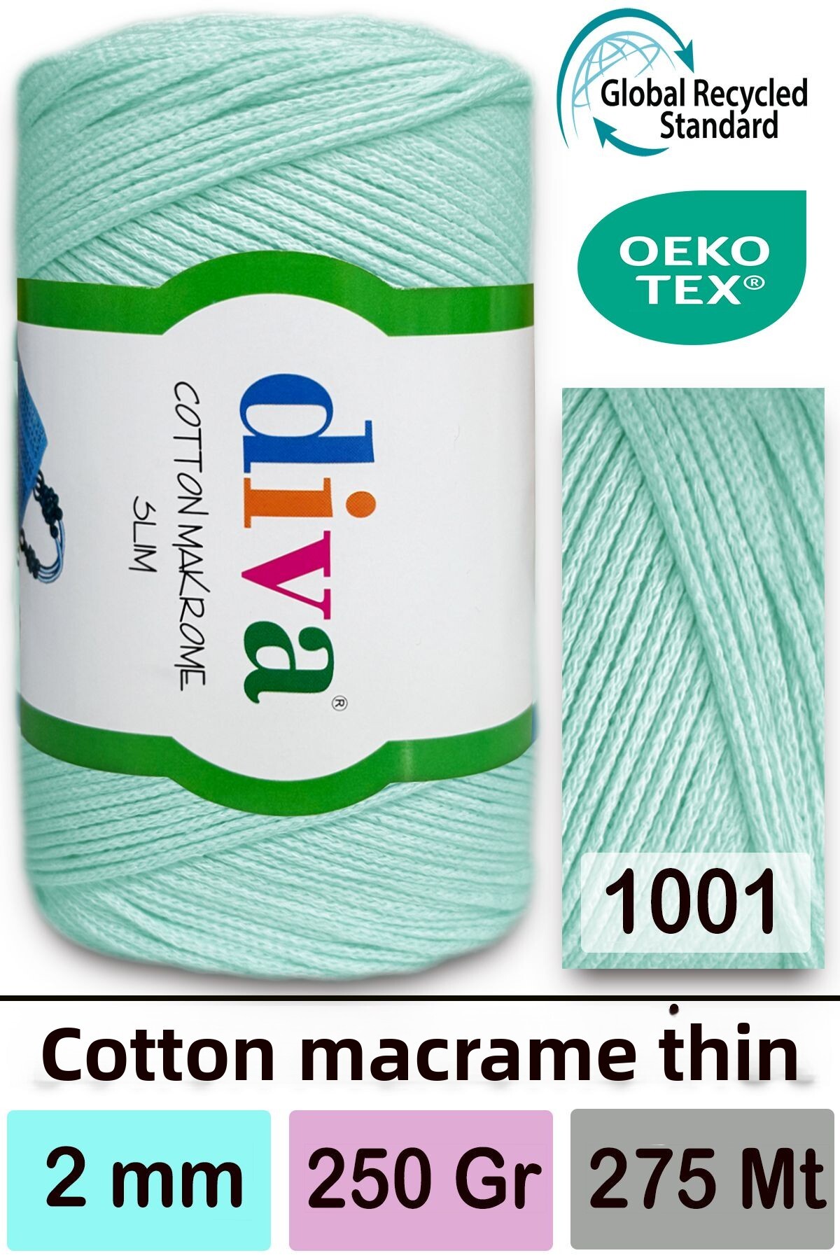 Caracteristici Diva İplik Diva Cotton Macrame Thin 1001 Soft Mint