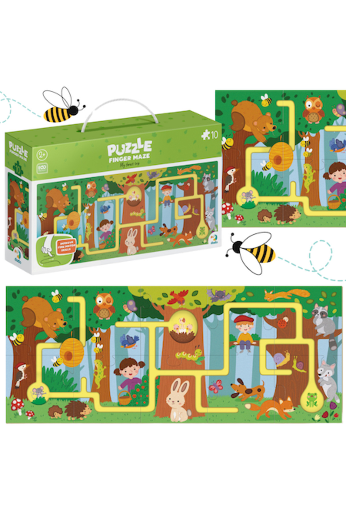 Large pieces perfect for small hands, a forest theme that introduces kids to nature, and a labyrinth format that enhances problem-solving and logical thinking skills. Made from safe, high-quality non-toxic materials, it ensures safety and supports the development of fine motor skills and hand-eye coordination.