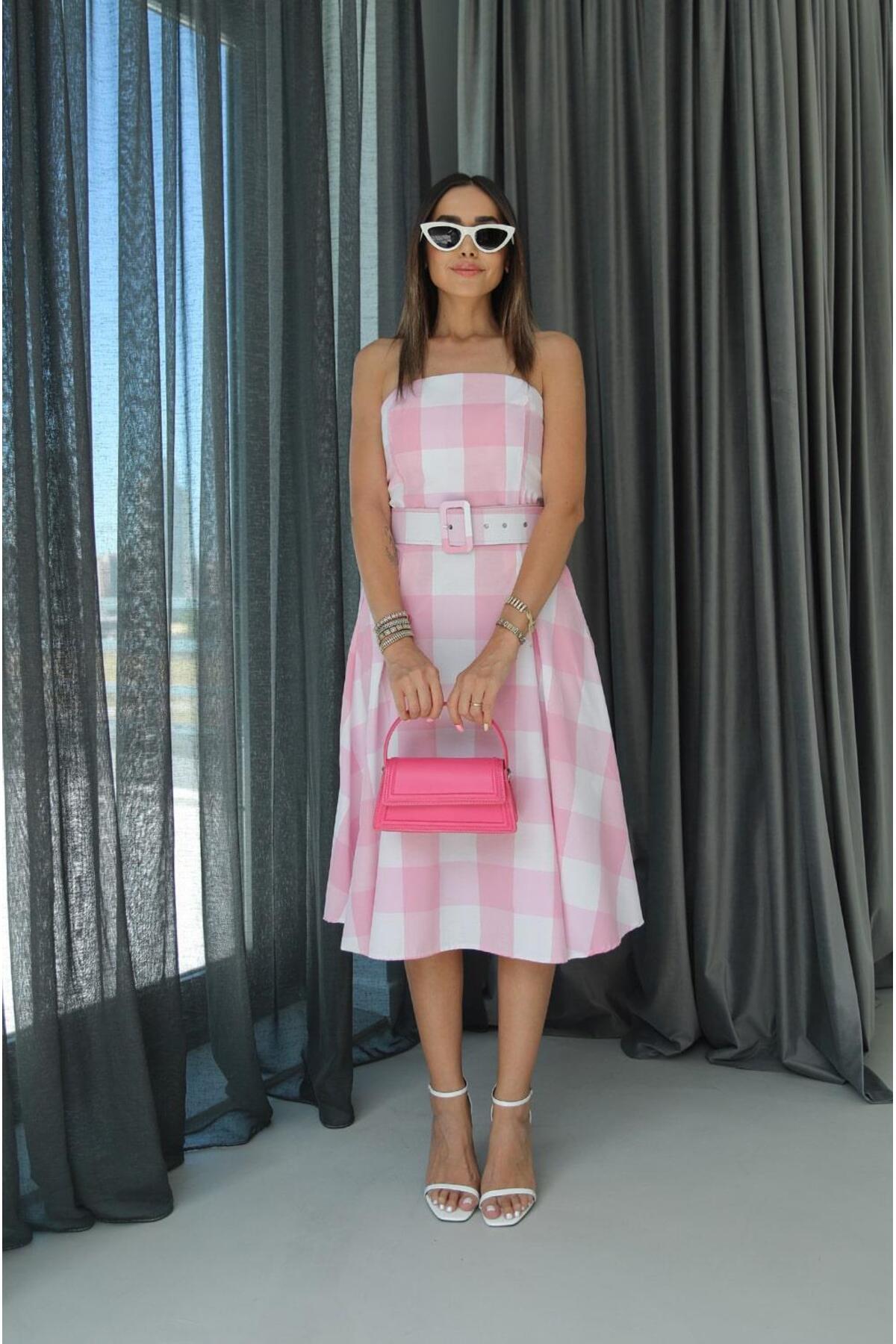 Caracteristici Havoş Rochie roz cu curea vichy