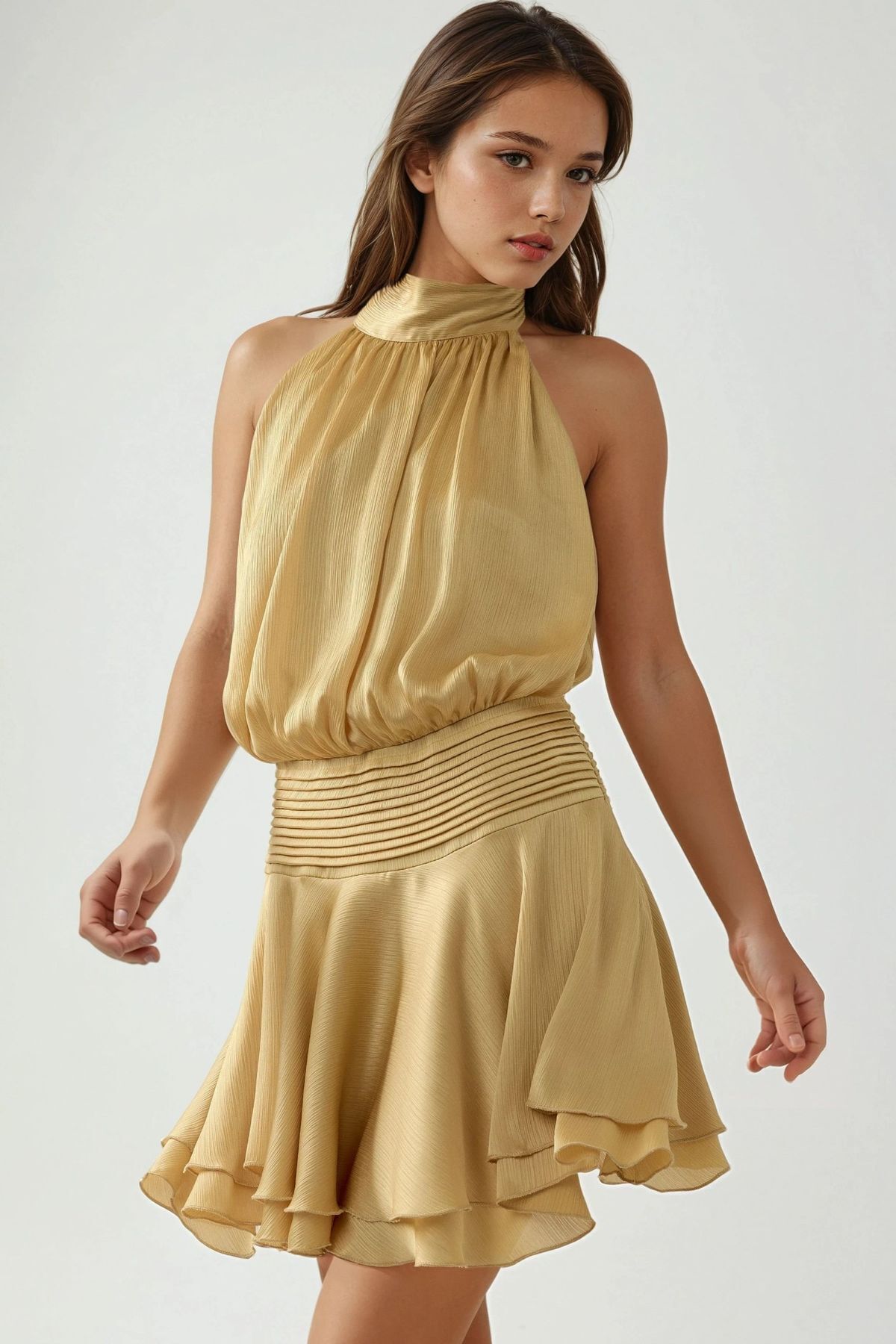 Hiccup Rochie mini texturată cu guler înalt
