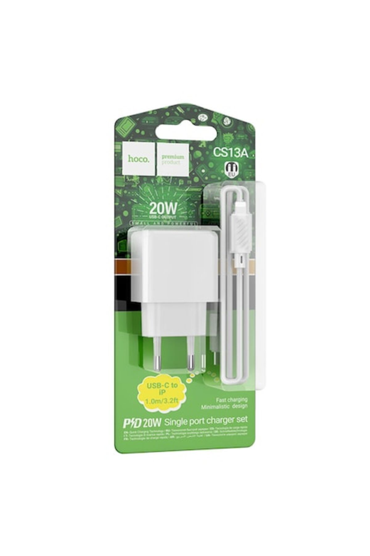Caracteristici Hoco Încărcător de rețea (CS13A) + cablu Lightning, 20W, 1xUSB-C, PD, alb