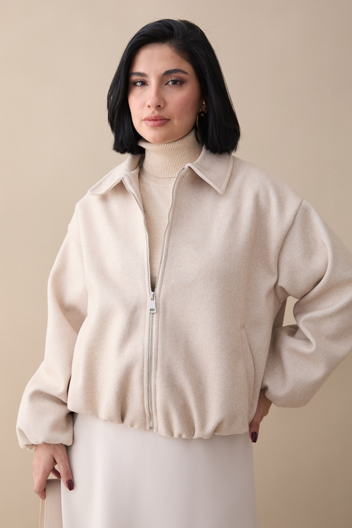 Caracteristici InStyle Jachetă scurtă de tip Bomber bej