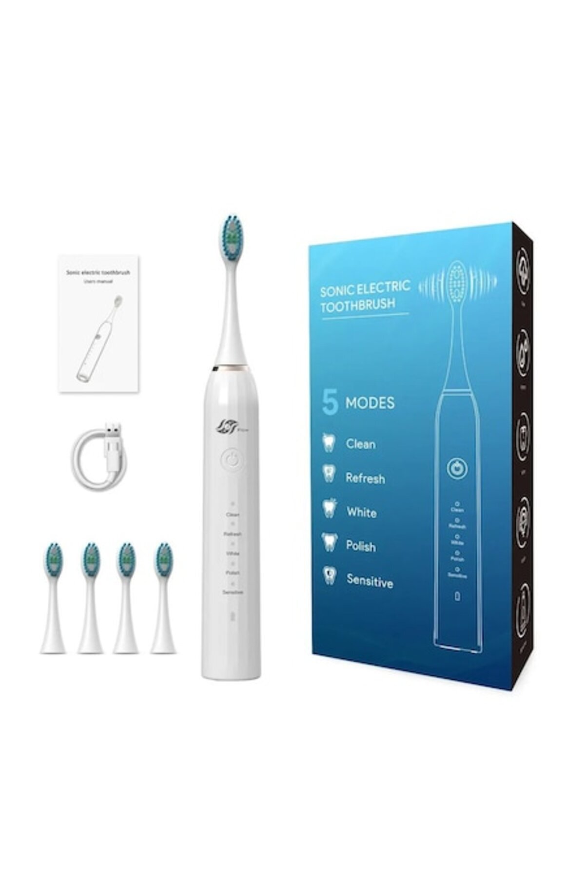 Caracteristici JFlow Electric Toothbrush JetFlow, 5 Programs, Memory Function, Smart Timer, USB-C, IPX7, 4 Heads, White