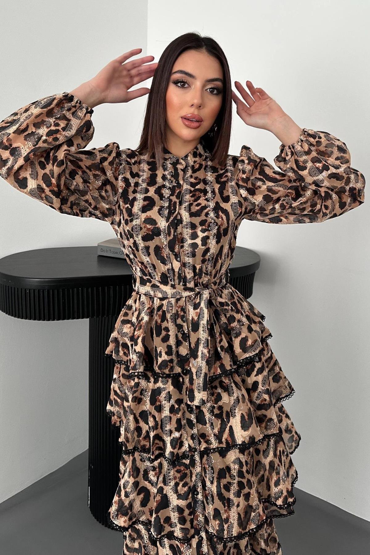 Lady Pixie Rochie lungă cu volane și dungi leopard