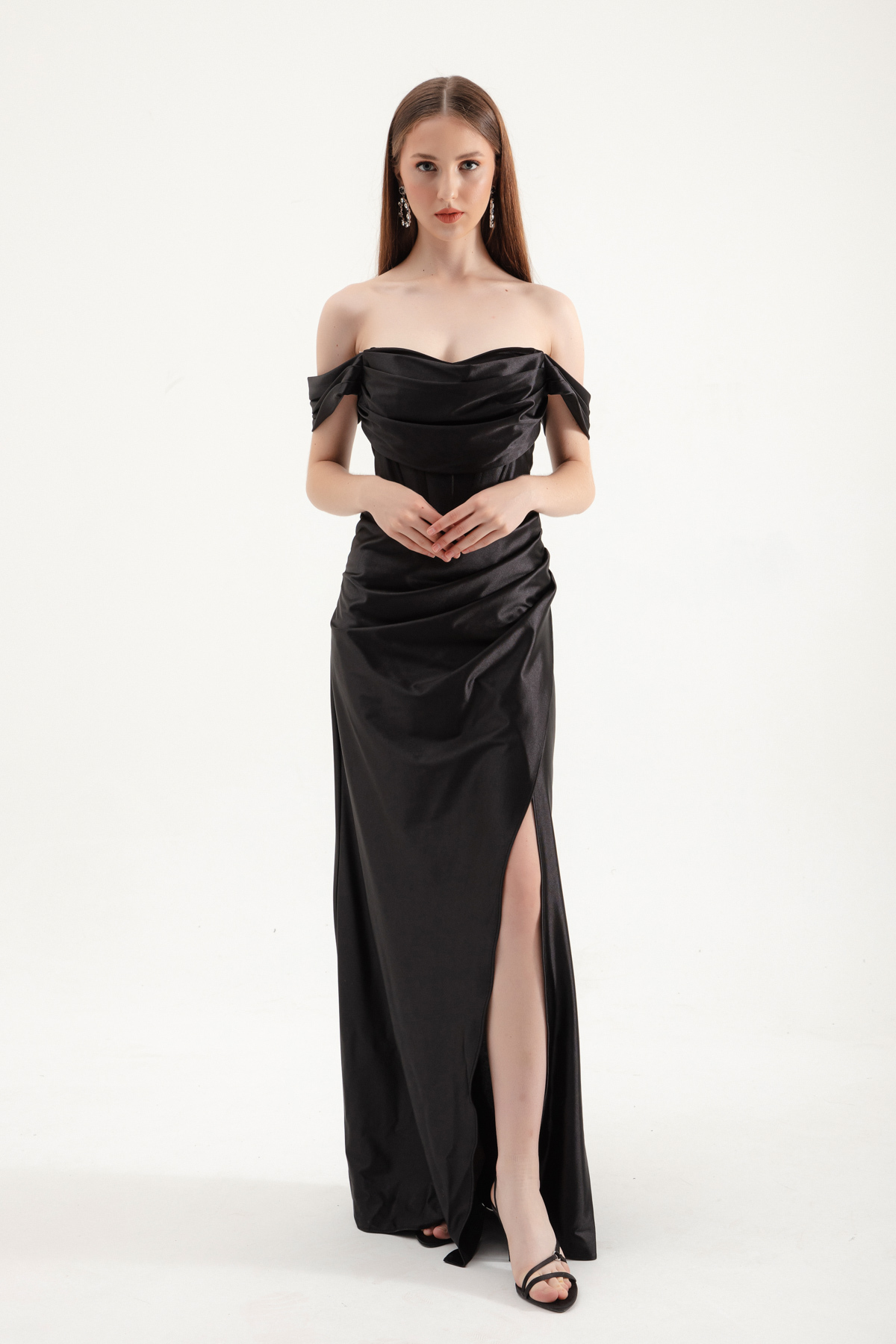 Caracteristici Lafaba Rochie de seară lungă, neagră, cu decolteu barcă