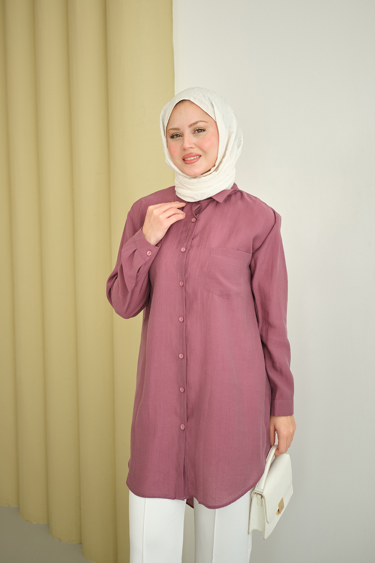 Caracteristici LOCCO Cămașă lungă de damă basic Dusty Rose