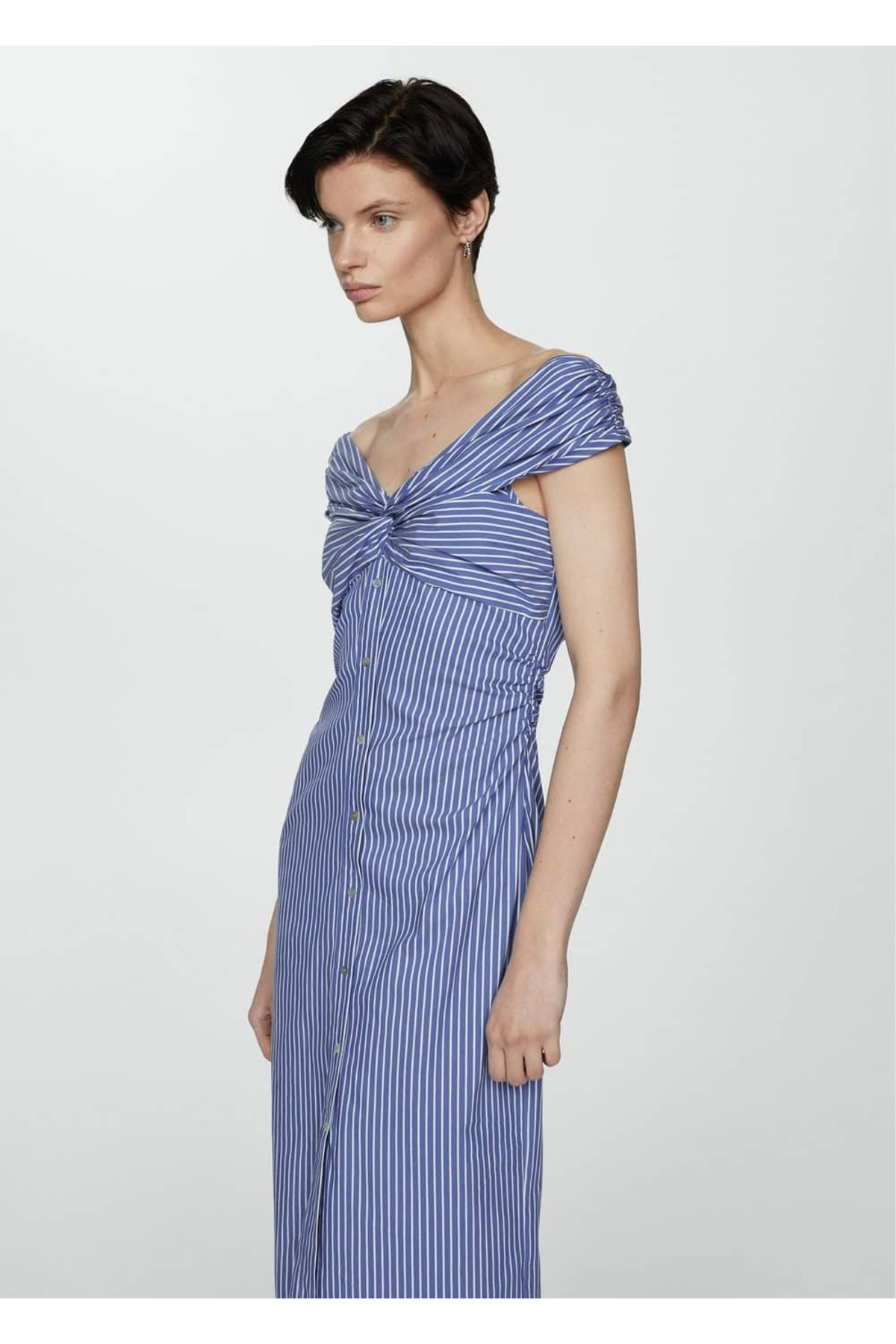 Pentru a te asigura că rochia se potrivește perfect, este recomandat să alegi cu un număr mai mic decât mărimea ta obișnuită. MANGO are o croială care îmbunătățește aspectul pe diferite tipuri de siluete, oferind în același timp confort.