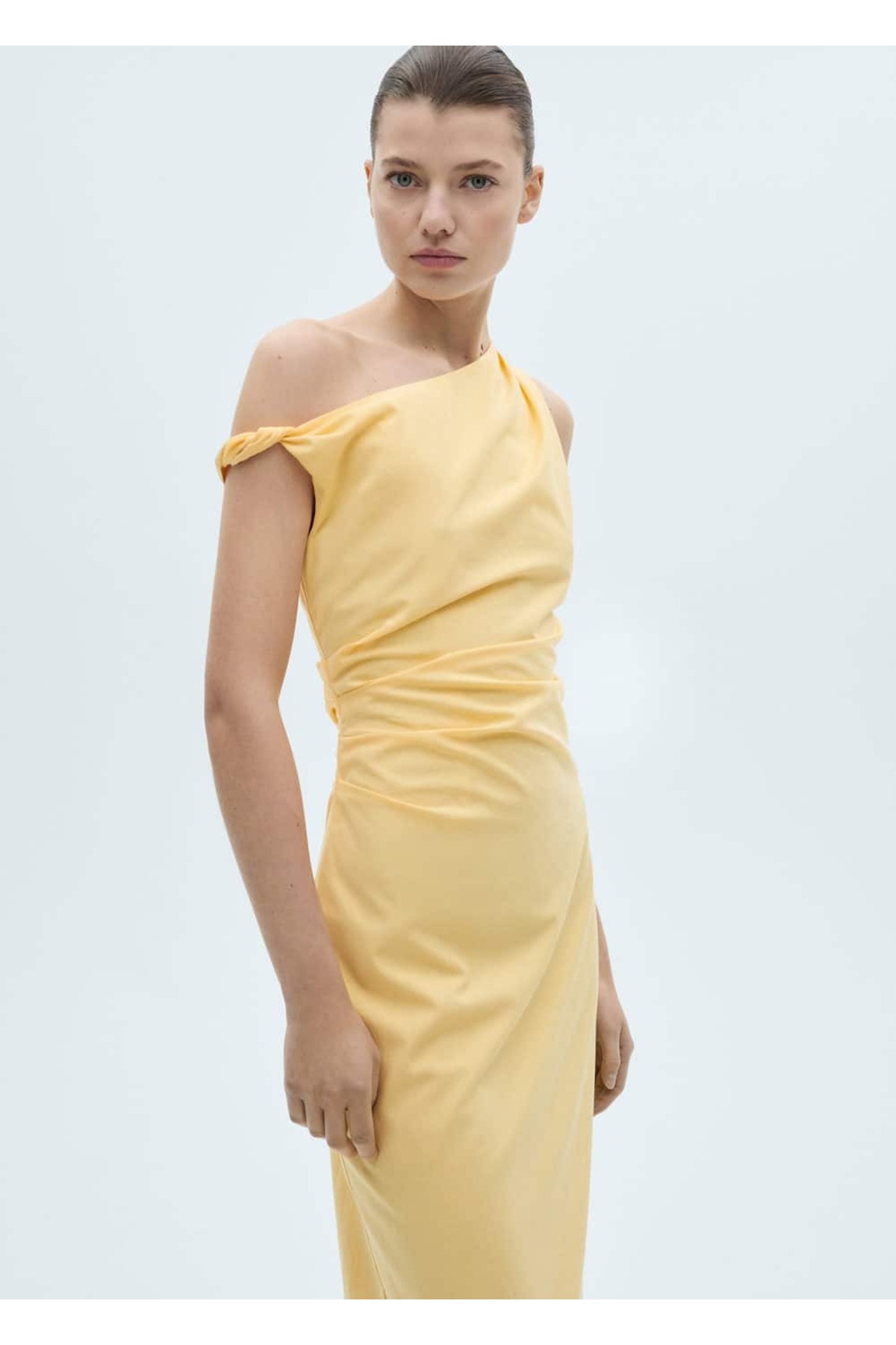 Caracteristici MANGO Woman Rochie midi asimetrică drapată