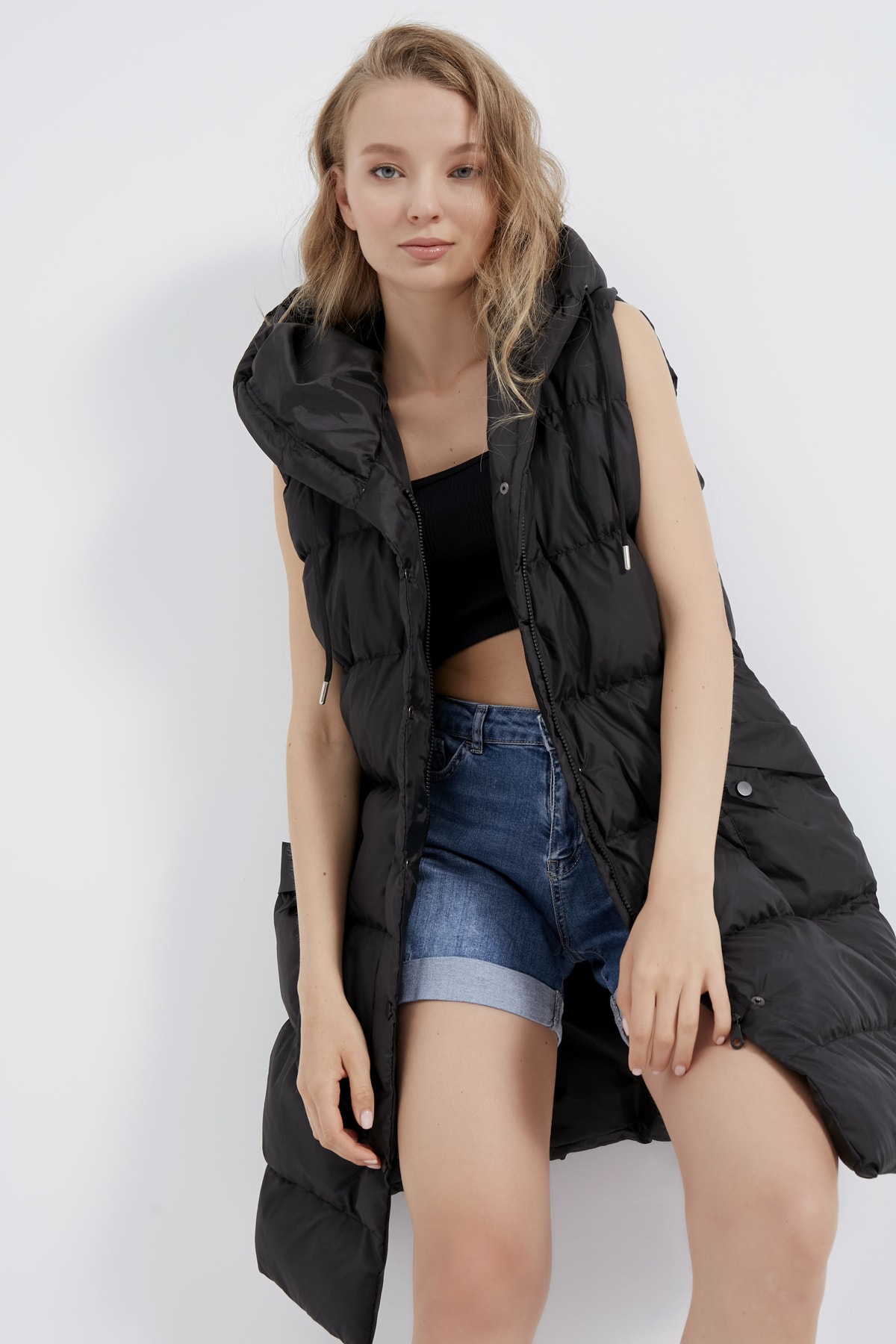 Caracteristici MEECY Vestă lungă neagră de damă