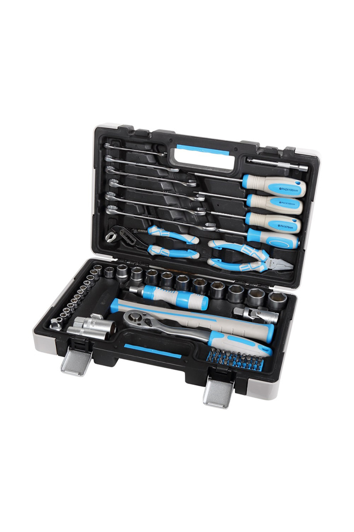 Material çelik krom-vanadyum, 75 parçadan oluşur, kısa lokma anahtarlar, tornavidalar, tokmak, tornavida uçları, plastik dayanıklı kasa