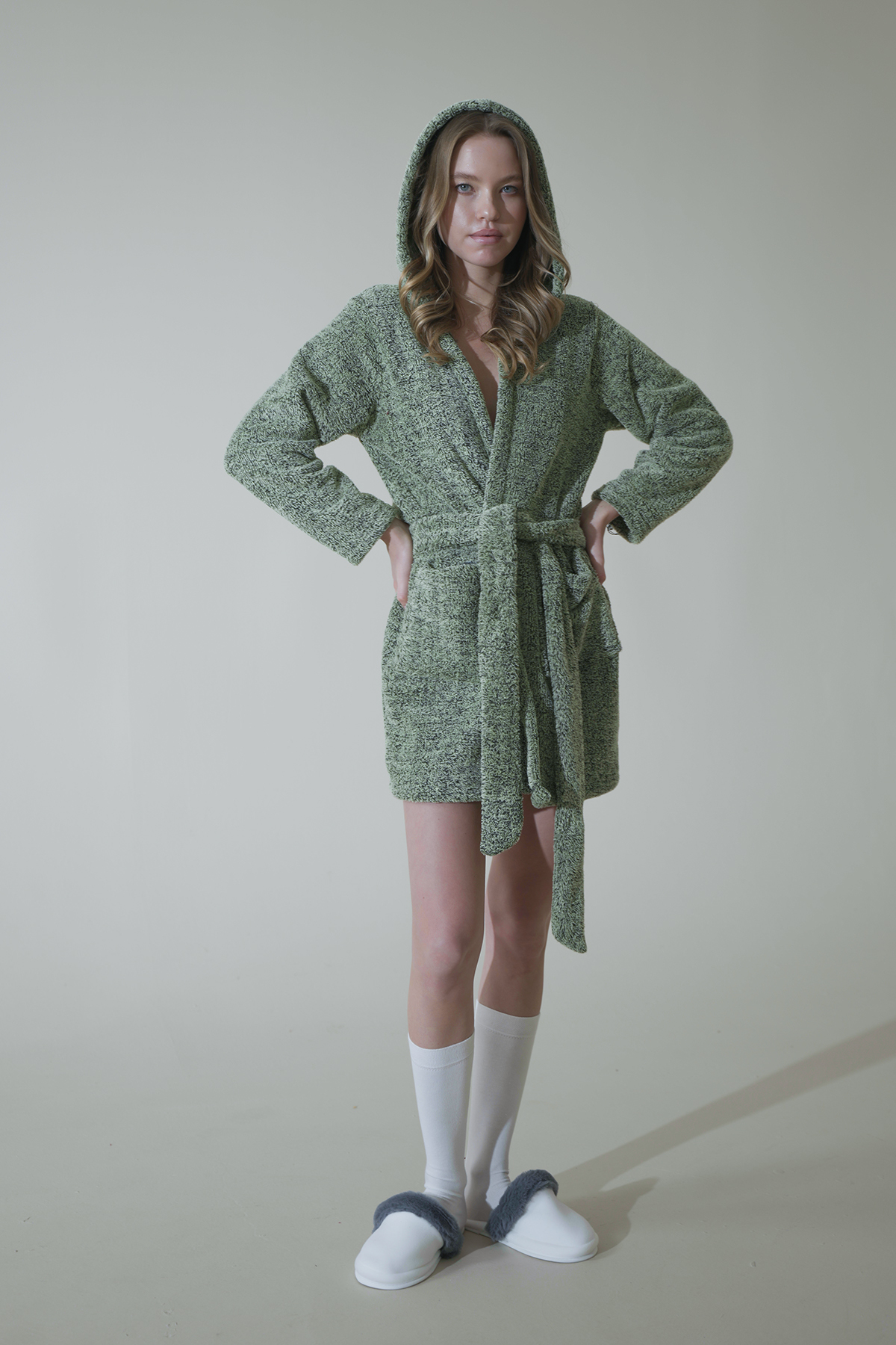 Mita Concept HALAT DE PLUȘ VERDE CU CAPĂTĂ