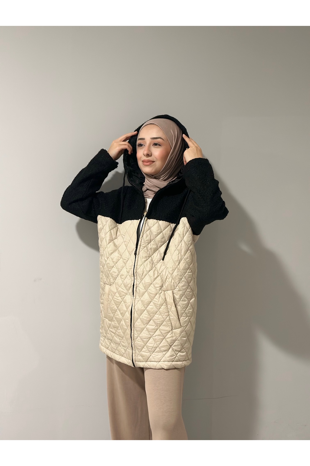 moda çağdaş cu glugă Jumătate de pluș geacă matlasată