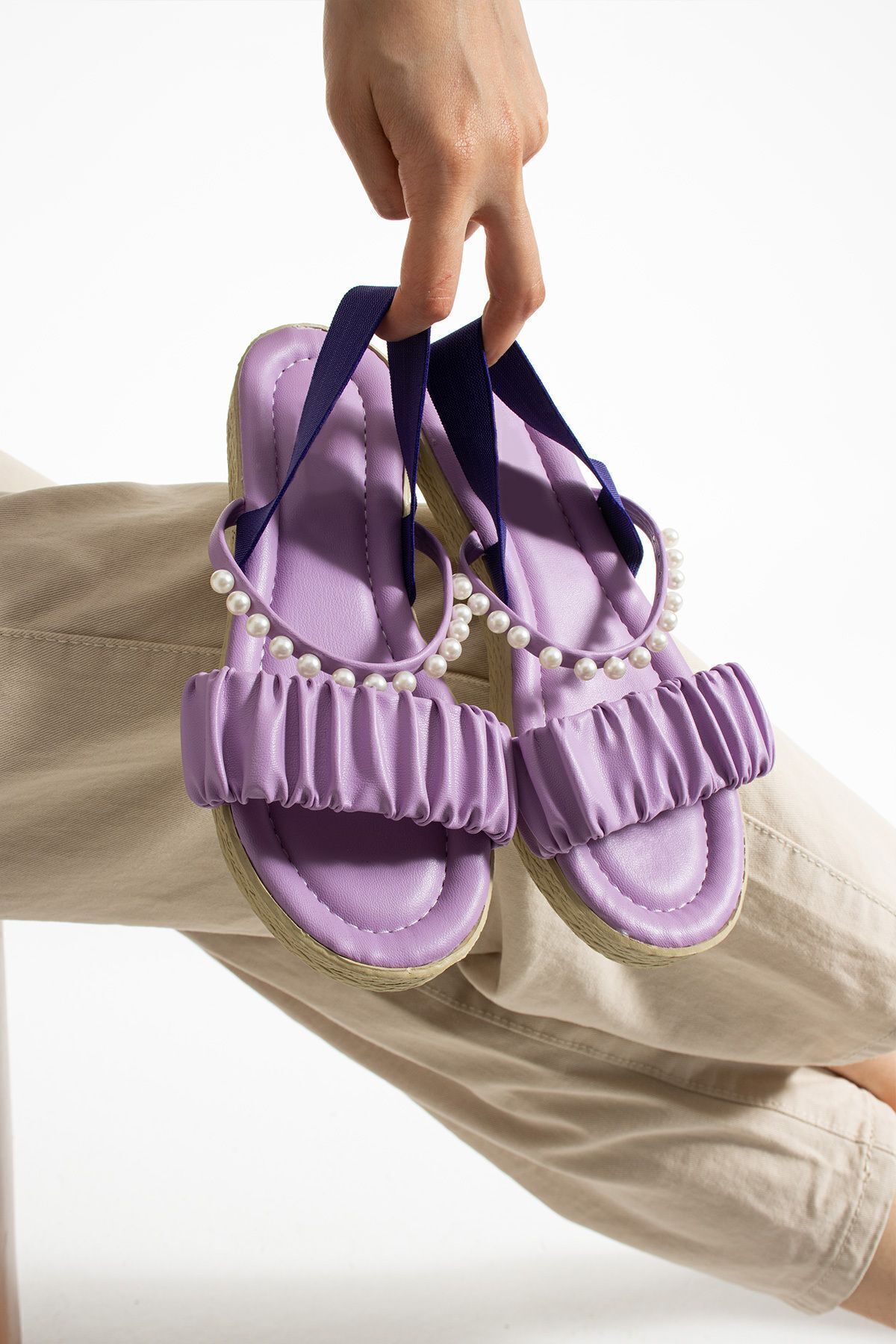 Caracteristici Moda Devrin Sandale elastice cu perle liliac