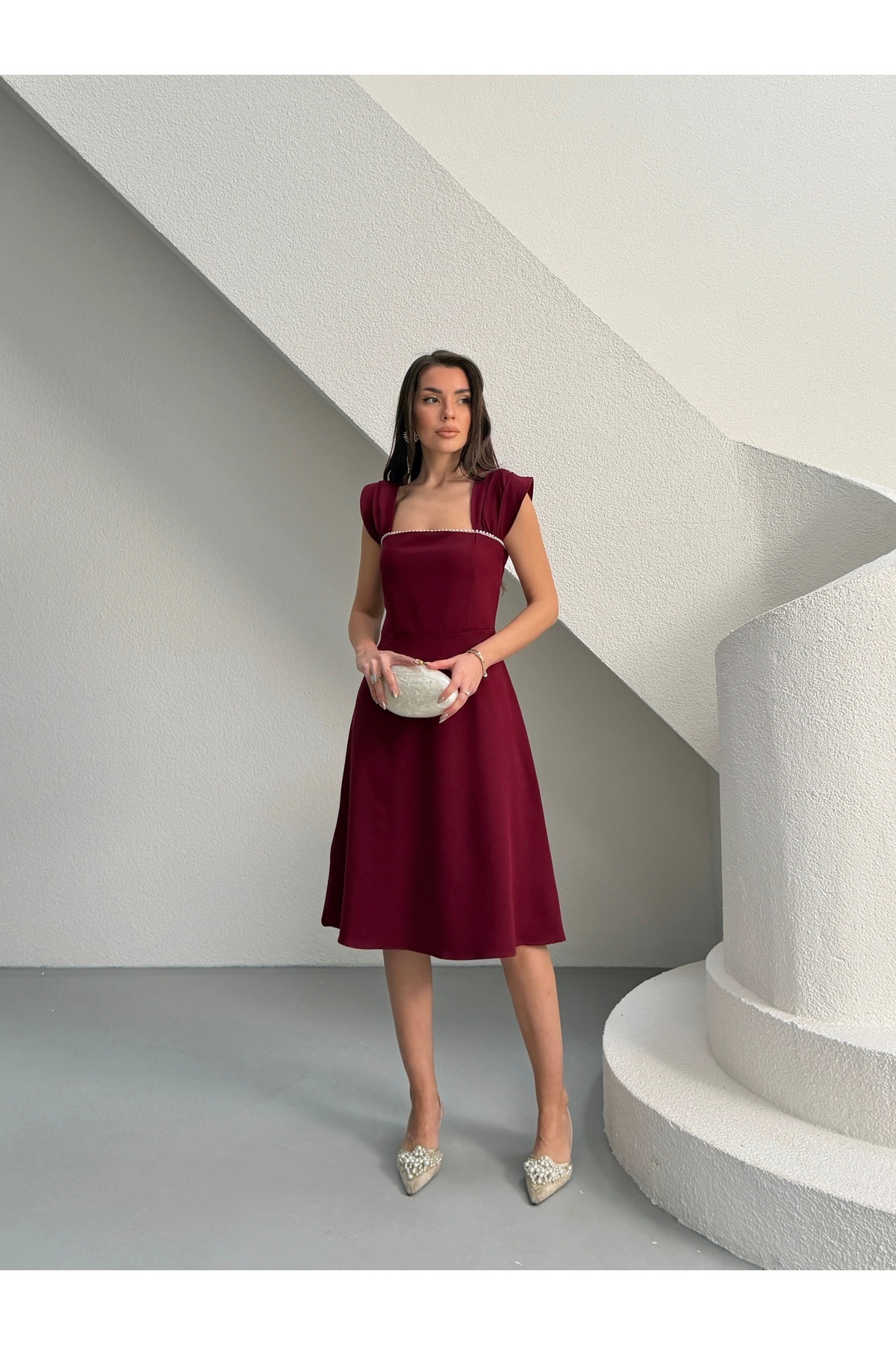 MODA DURAĞI Rochie midi cu perle