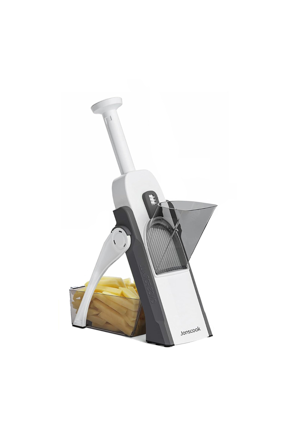 Foldable, compact design saves storage space. Includes multiple accessories for slicing, dicing, julienne and shredding—suitable for salads, soups and garnishes.