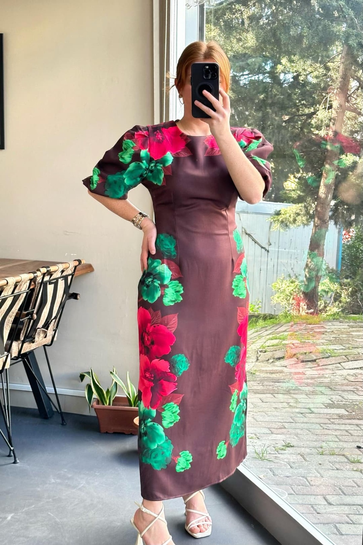 Caracteristici Pulli Collection Rochie midi florală maro deschis