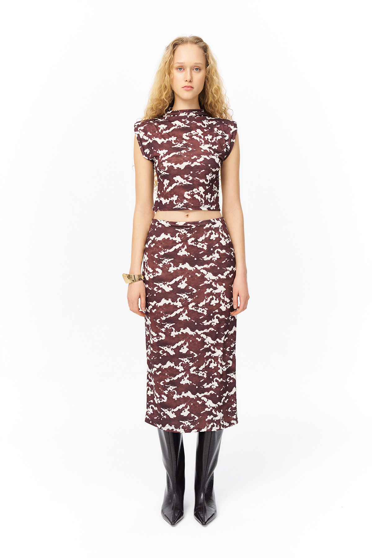 Caracteristici Quzu Fusta Midi Maro - Model Val