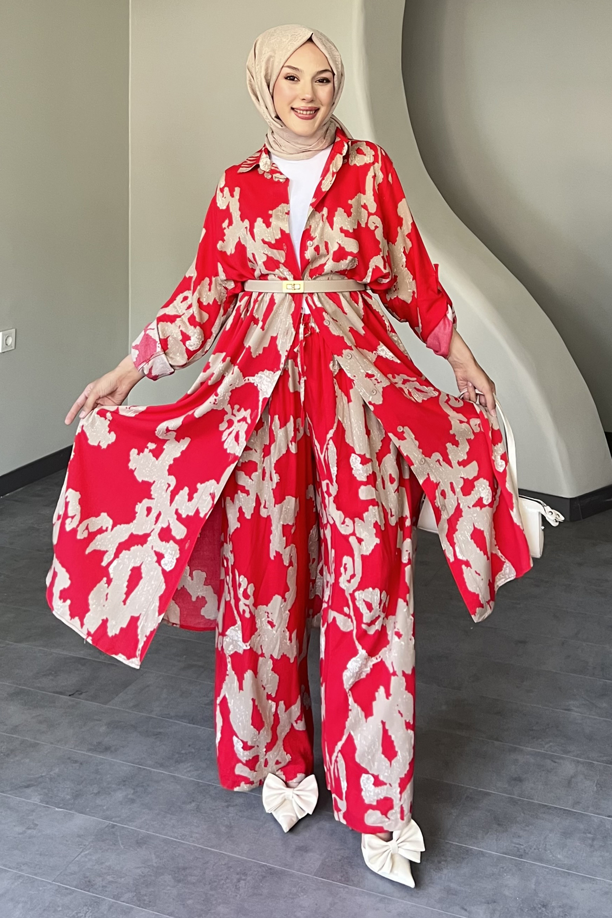 Caracteristici SaklıButik Set cămașă lungă cu model de piese