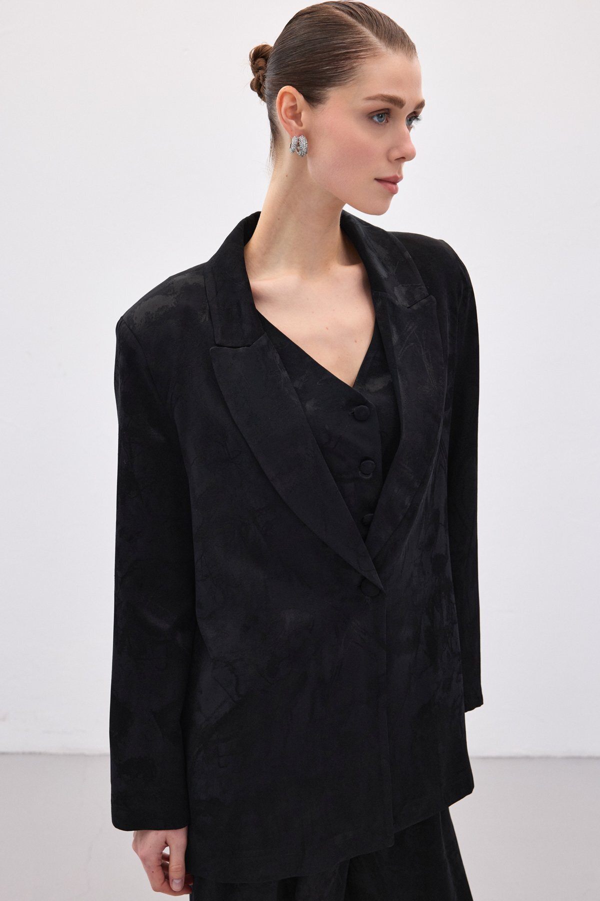 Caracteristici Sateen Jachetă lungă jacquard - neagră