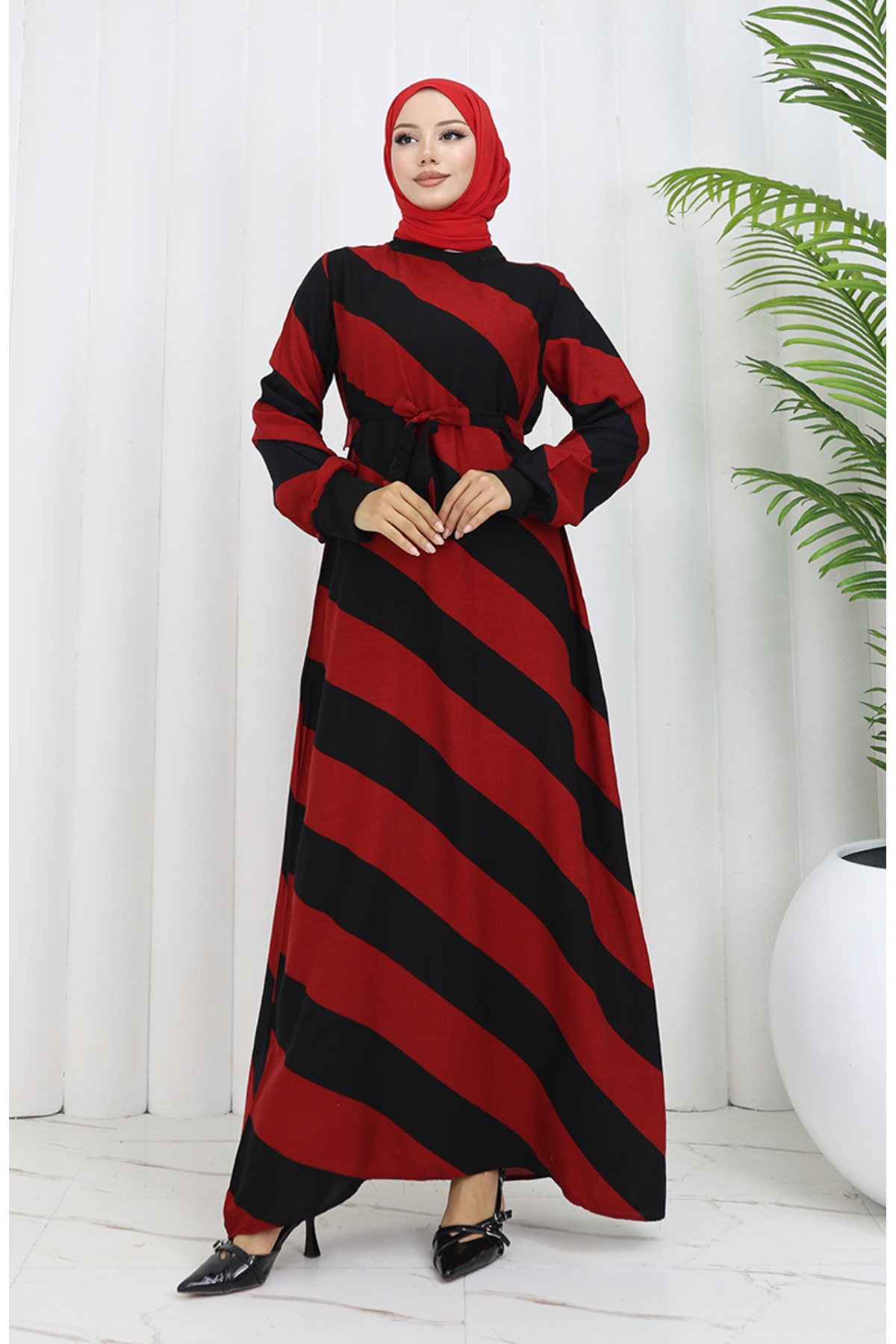 sefamerve γεωμετρικό φόρεμα με ζώνη βισκόζης - μπορντό μαύρο 0460-08