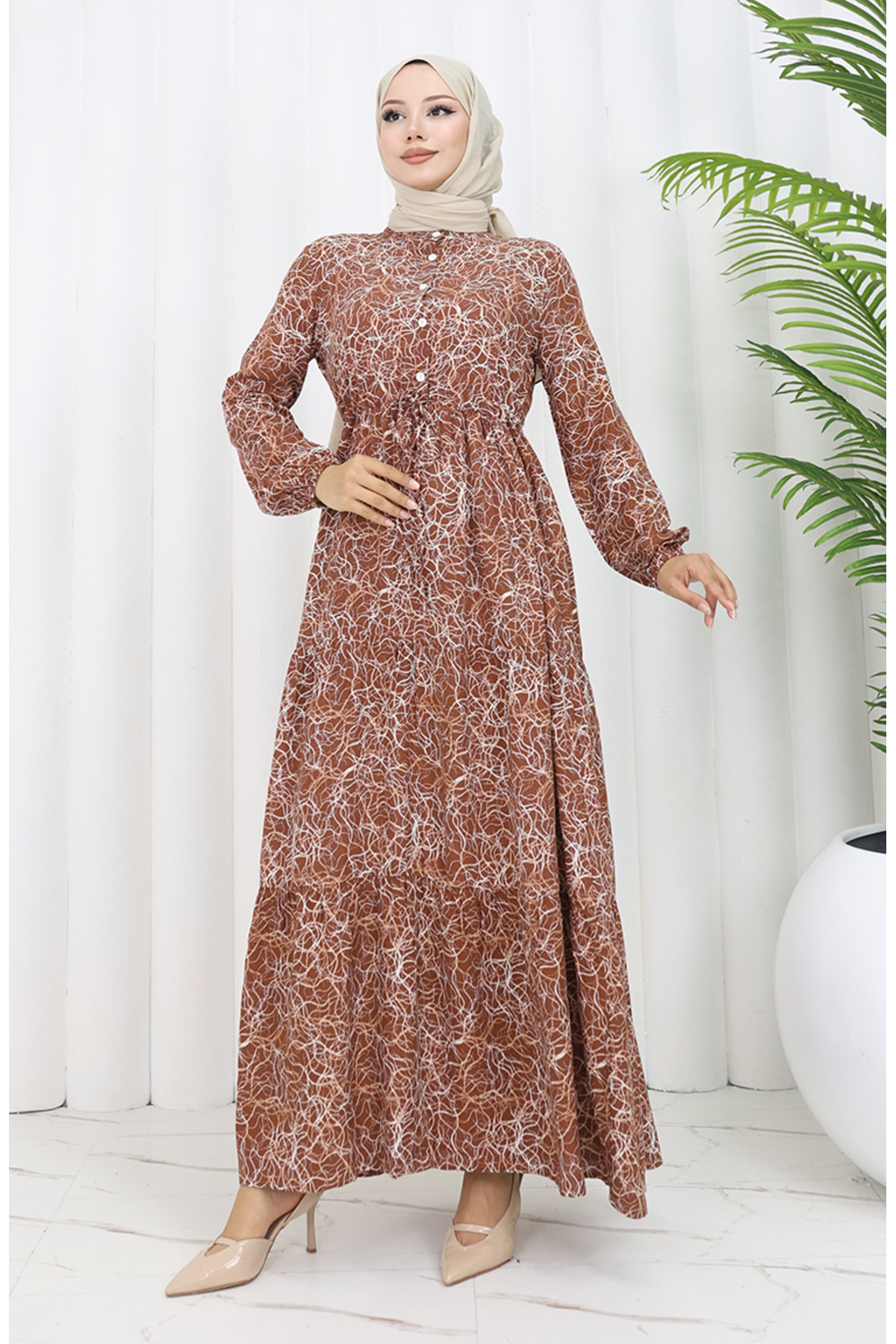 sefamerve Rochie mixtă cu model bronz - 0352-02