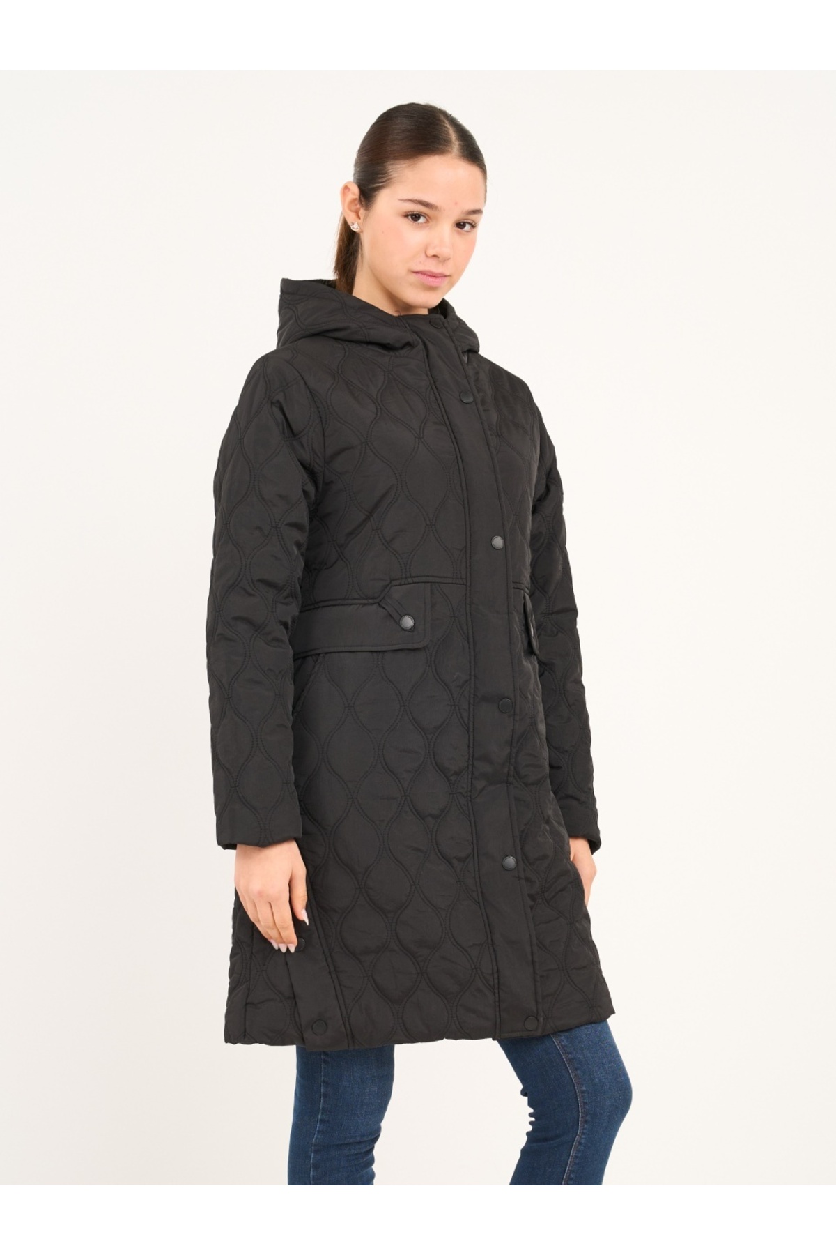 Caracteristici Timeout Jacheta dama lunga cu gluga si detalii