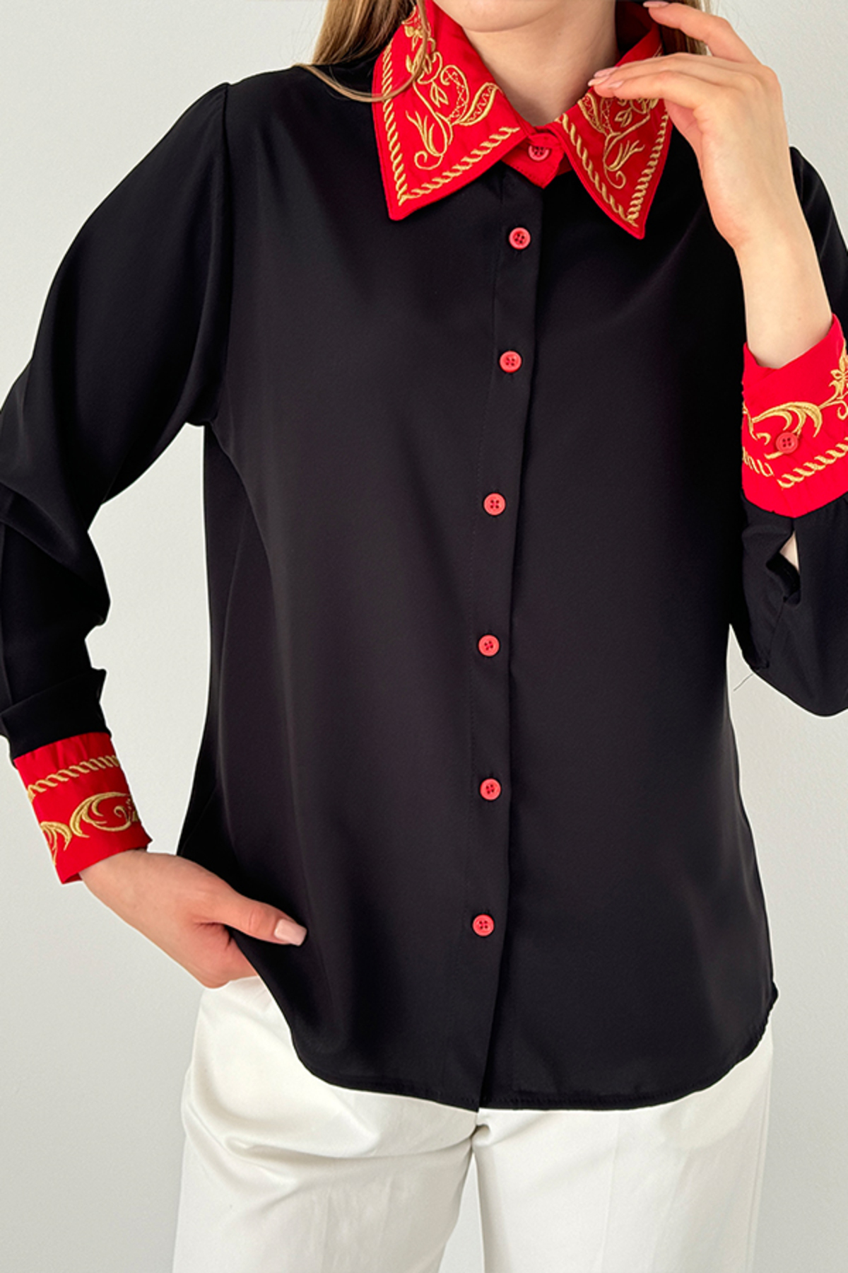 Caracteristici TRND Guler Brodat Auriu - Cămașă Modernă Brodată Model