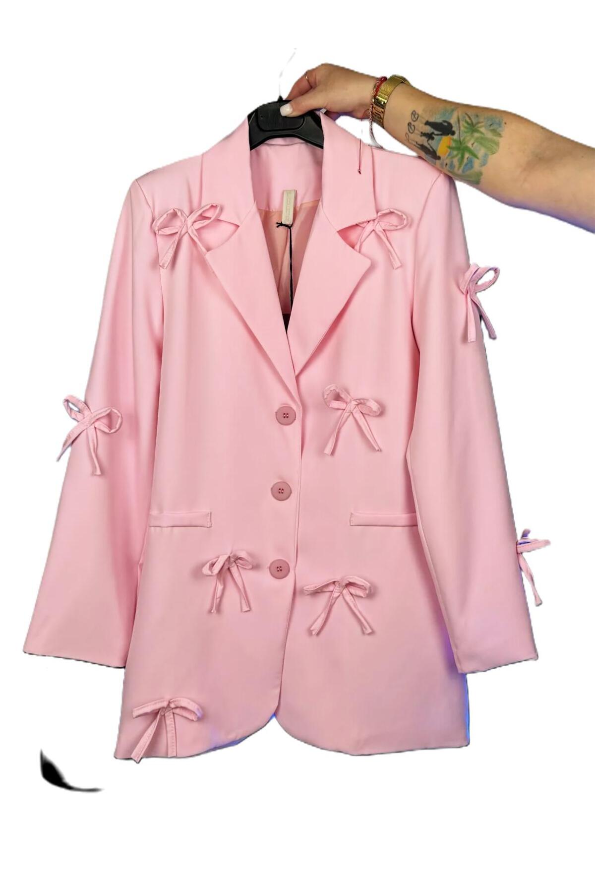 Universal Jachetă lungă cu funde - Roz