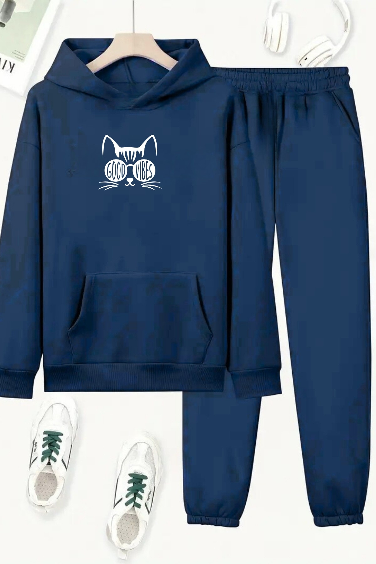 VBSVİBES Hanorac unisex bleumarin GOOD VIBES CAT imprimat - țesătură de iarnă