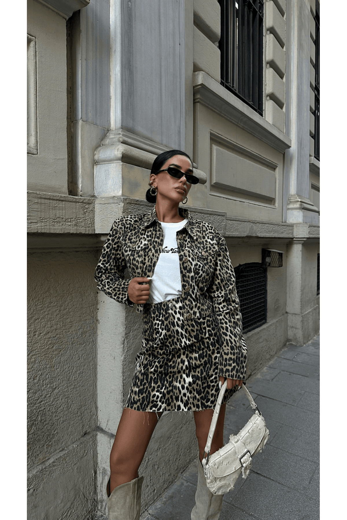 YOUR NAME Fusta mini de damă maro cu model leopard