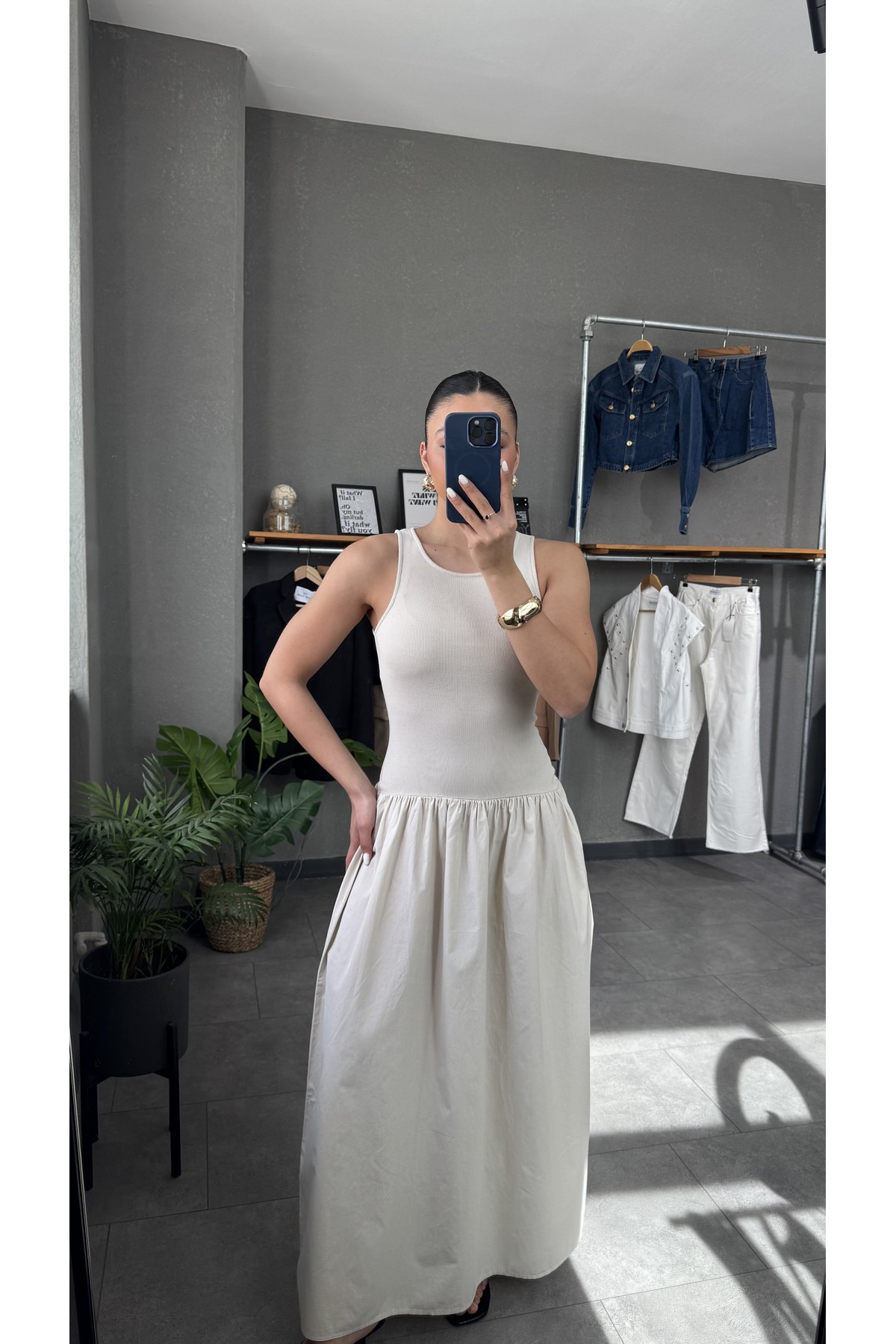 YOUR NAME Rochie lungă bej cu decolteu
