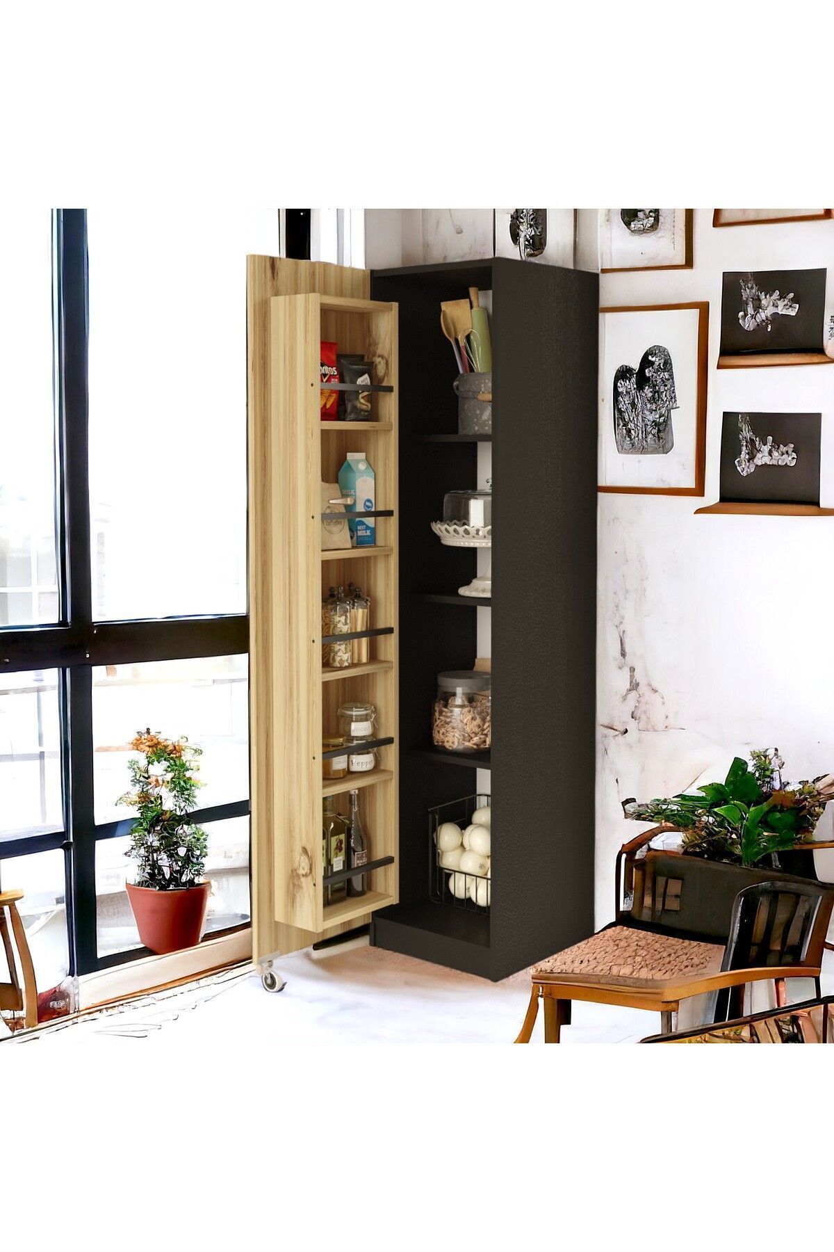 Robin Home Çok Amaçlı Dolap Mutfak Dolabı Keçe-Siyah