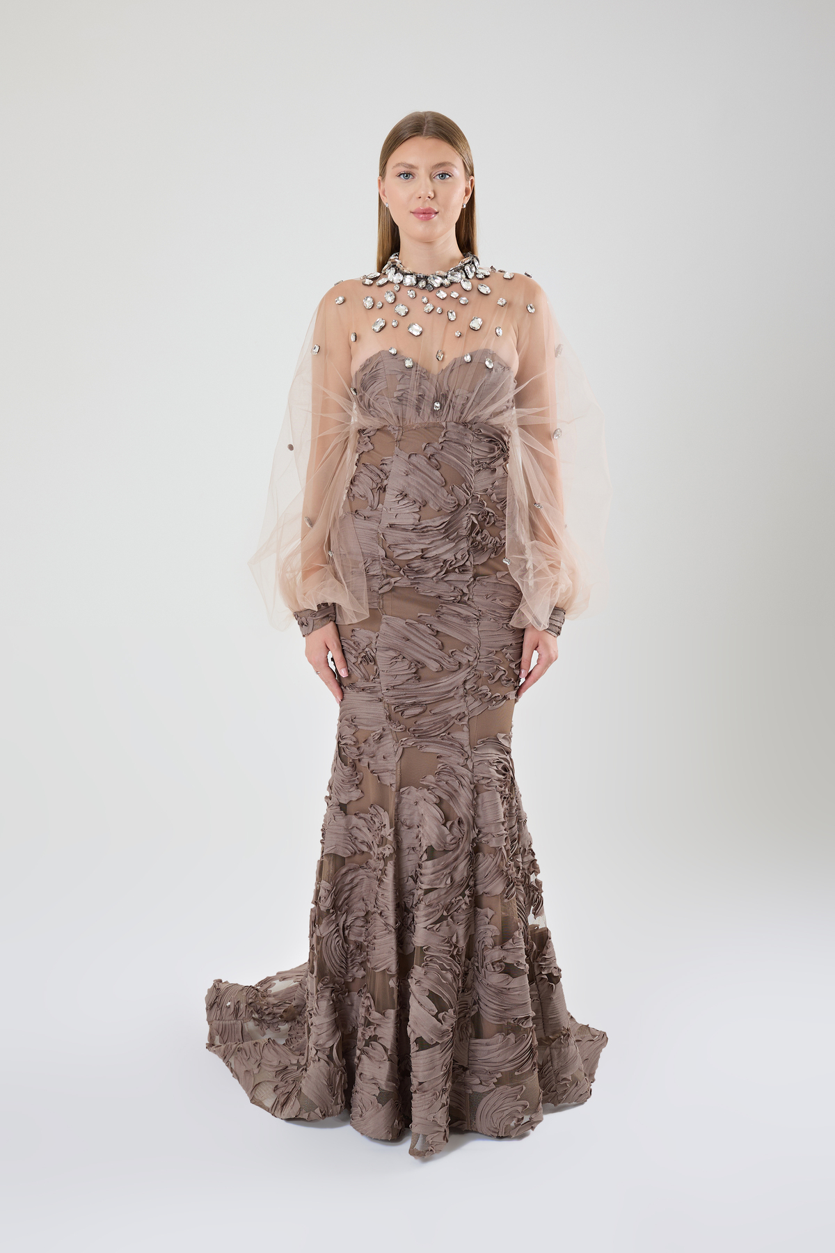 DOKULU ORGANZE ROBA TAŞ AKSESUARLI ŞIK ELBİSE