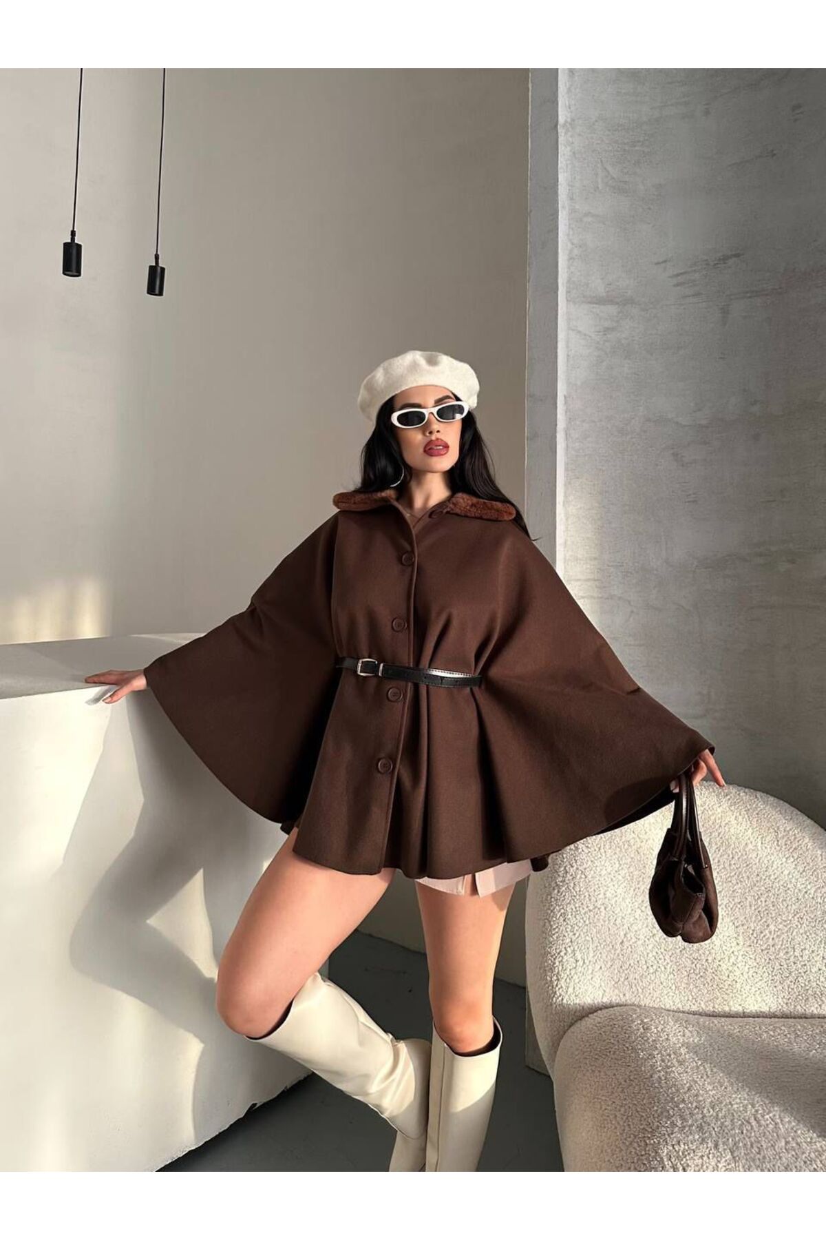 Rouge basıc KAŞE KEMERLİ PANÇO Özellikleri
