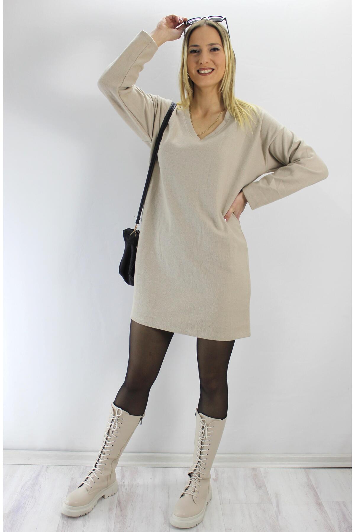 Rouge basıc Selanik V Yaka Elbise