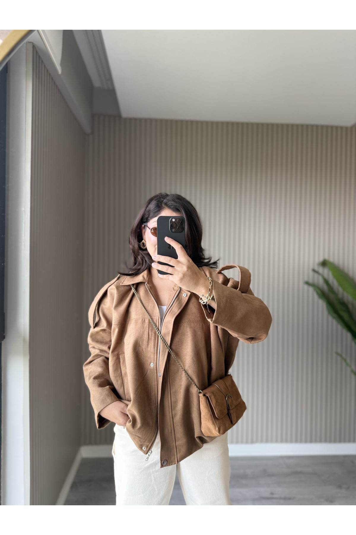 ROZERA Taba Renk Süet Bomber Ceket