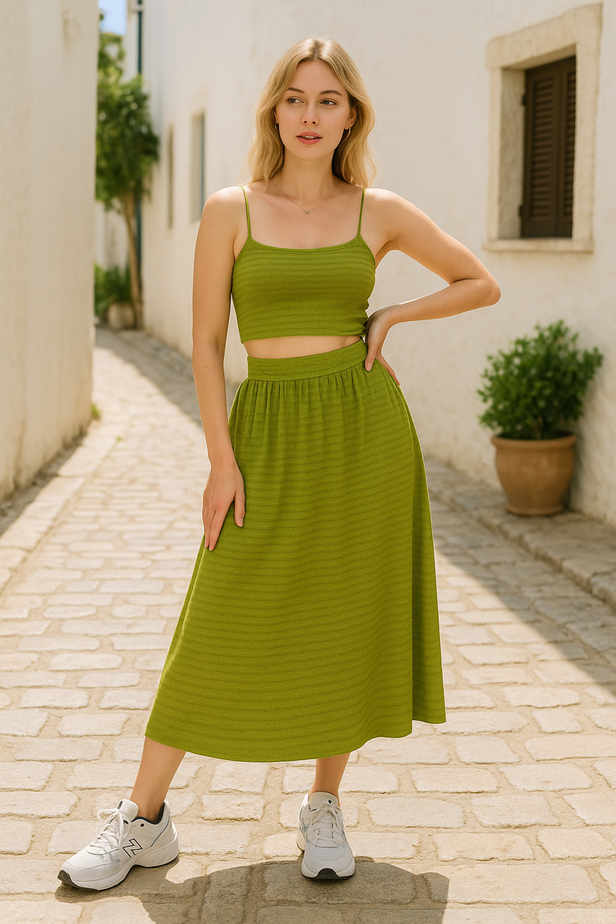 Ceylen Elastična midi suknja Naborano