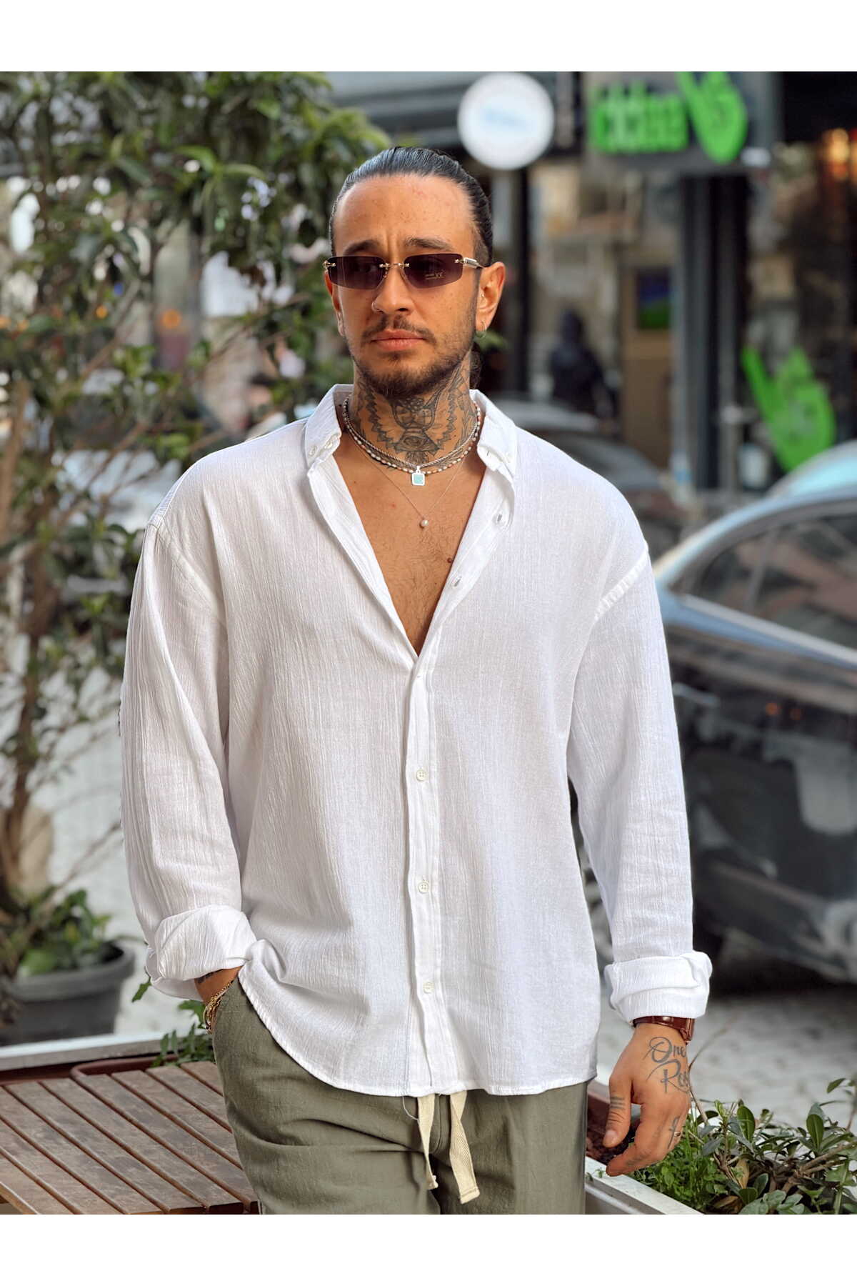 manch collection Oversize kroj Krčnjava Lan Košulja Bela