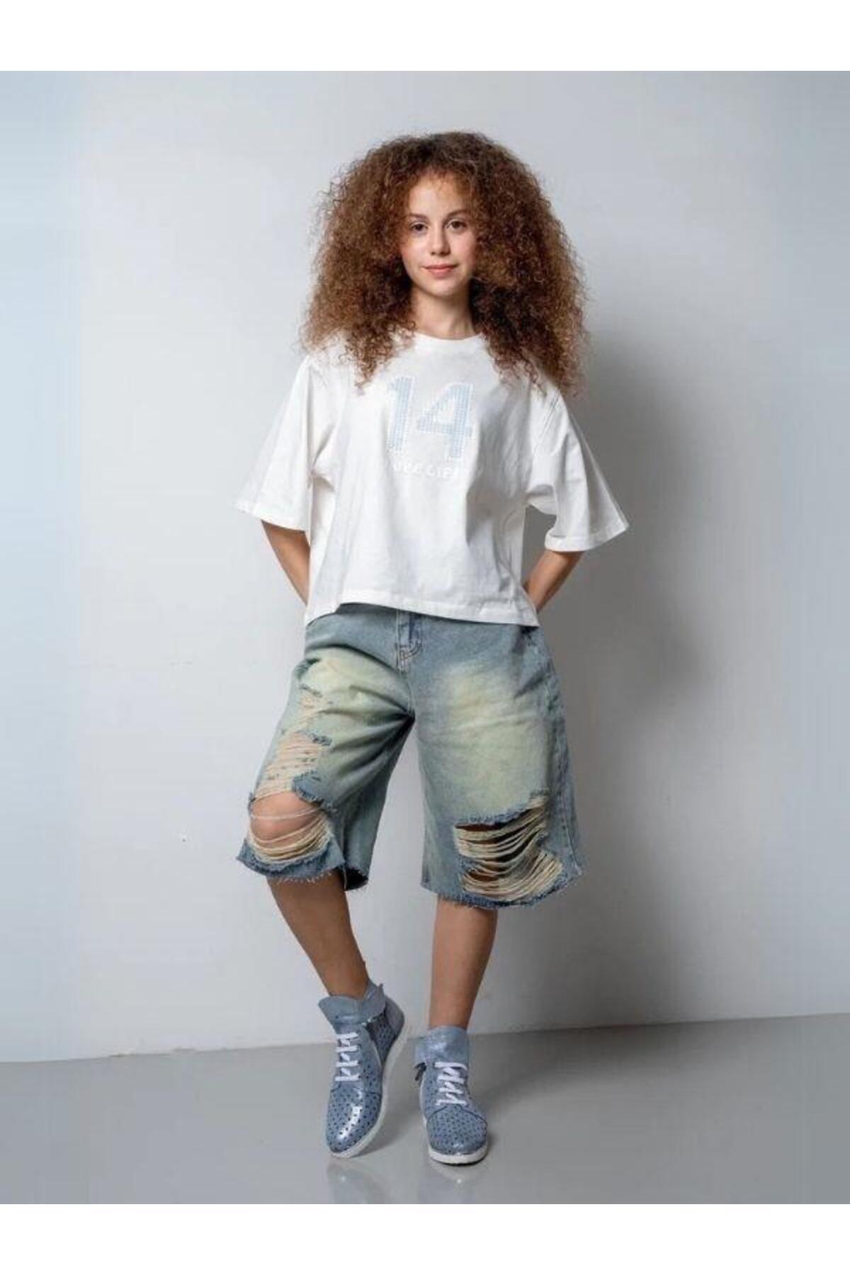 Zekids Devojčice, poderane Denim farmerke