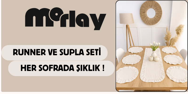 KAMİZ Fırfırlı Keten Runner & 6'lı Fıfırlı Supla Seti - 7 Parça Çeyiz Seti