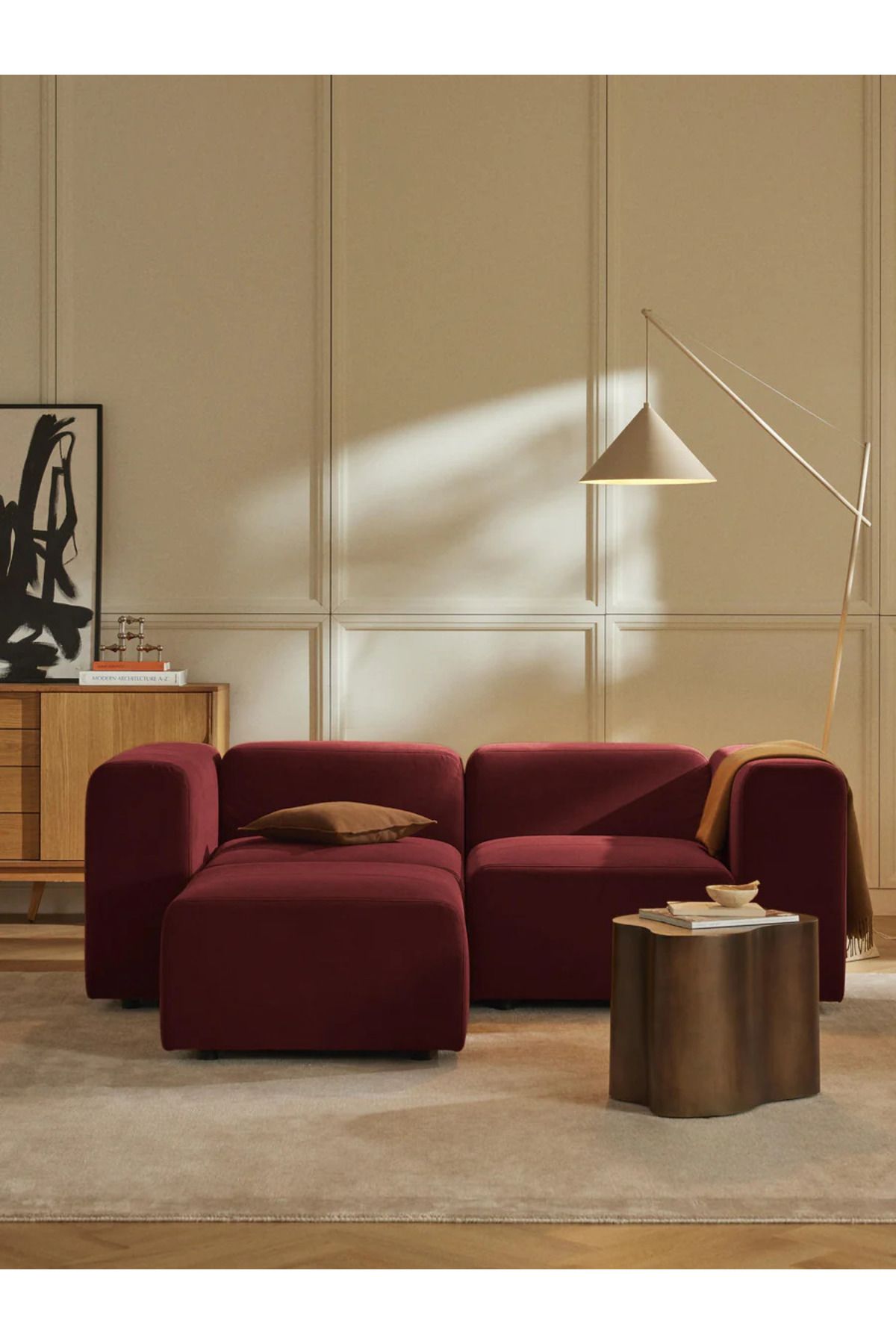 S Home Design Concept Pietro 3 Modül Köşe (2 MODÜL VE PUF TAKIM), Yönsüz Kadife, Bordo