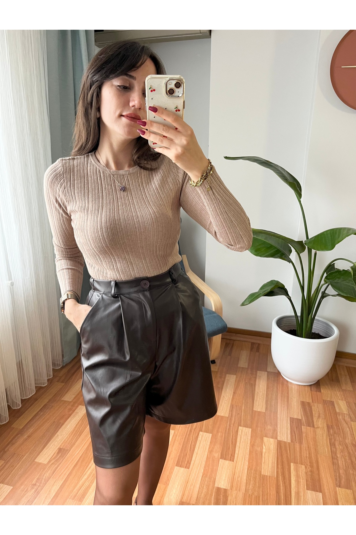 SADE ACI KAHVE DERİ ŞORT Özellikleri