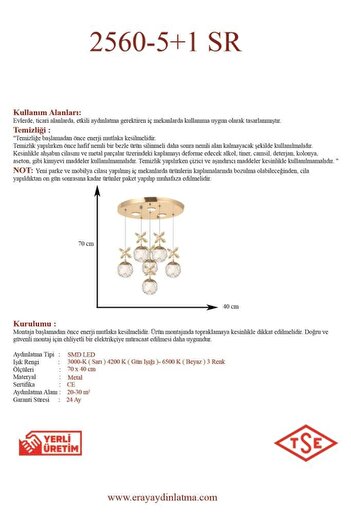 Eray Aydınlatma 2560-5+1 6 Li Sarı Led Avize