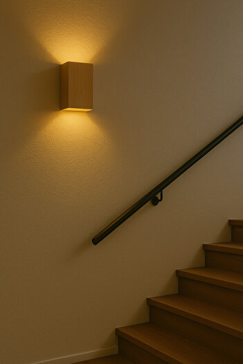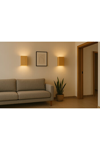 Emriba 2 Adet Ahşap Pilli Dekoratif Duvar Aydınlatması Aplik Gece Lambası (AÇIK MEŞE - AMBER)