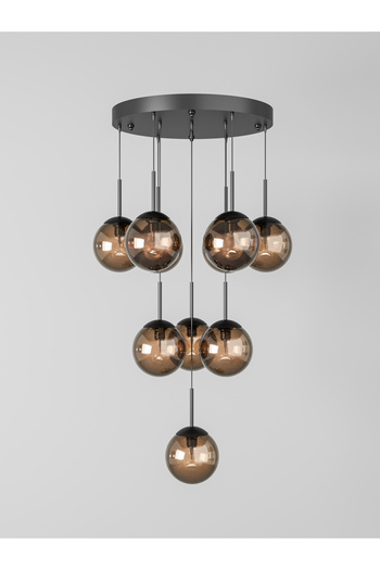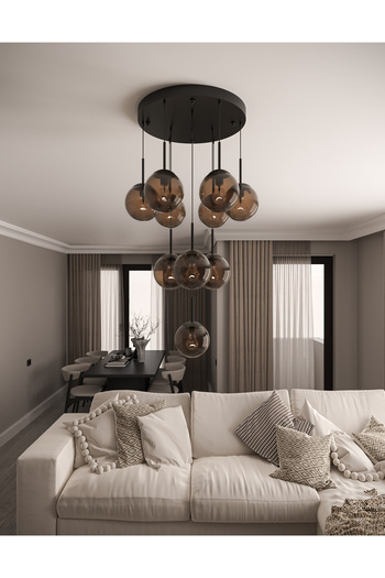 3948+ Ürünavizade ECLIPSE Modern 10'lu Sarkıt Siyah Metal Avize - Bal Renkli Cam Küre, E27 Duy, Dekoratif Aydınlatma
