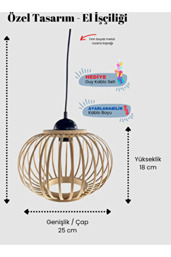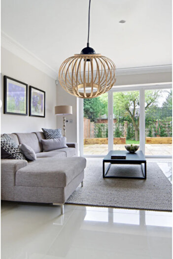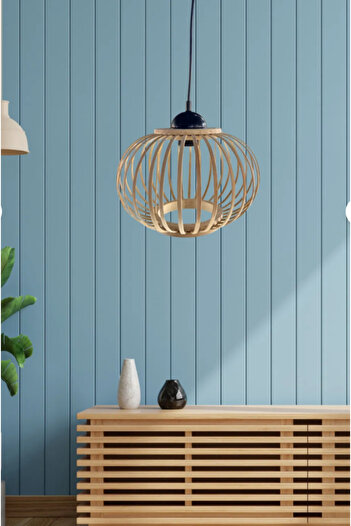AILEEN Doğal Bambu Ahşap Sarkıt Avize | Modern Yuvarlak Tavan Aydınlatma