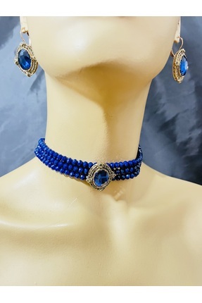 Sam Sarı Cevşen Kolye - Zincirli / El İşi Kristal Boncuk Örme /