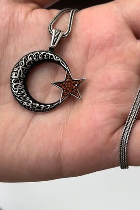 MODA Modahilye 925 Ayar Gümüş Bozkurt Ayyıldız Tasarım Altın Kaplama Kolye